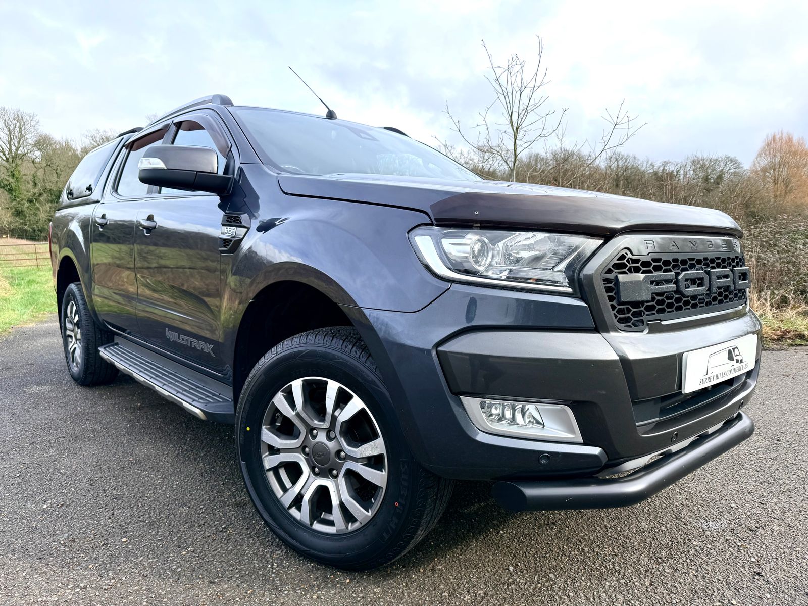 Introducing the remarkable Ford Ranger 3.2 TDCi Wildtrak Pickup, now available at Surrey Hills Commercials in Bentley, Hampshire. This stunning double cab 4WD in striking Sea Grey is designed for those who demand versatility and performance. With its powerful 200 PS engine and automatic transmission, navigating both city streets and rugged terrain is effortless. This Ranger comes loaded with desirable optional extras, including front parking sensors for added convenience, a 230V inverter socket to power your devices on the go, and a robust Truckman hard top canopy, ensuring your gear stays secure. Enjoy seamless connectivity with Apple CarPlay and Android Auto, keeping you linked to your favourite apps while on the move. In fantastic condition, the vehicle boasts a full service history and an MOT valid until January 2027. A fresh service and inspection have just been completed, giving you peace of mind for miles ahead. Plus, benefit from our 3 Months Absolute Cover Warranty for that extra layer of reassurance. Don’t miss out on this exceptional offering! Visit our website at www.surreyhillscommercials.co.uk to view the walk-around video and see this outstanding vehicle in detail. Drive away with confidence in your new Ford Ranger!