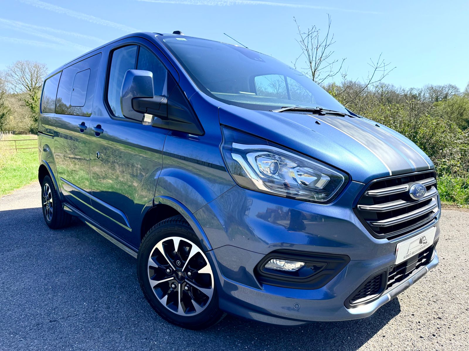 Introducing the Ford Transit Custom 2.0 320 EcoBlue Sport Crew Van, now available at Surrey Hills Commercials in Bentley, Hampshire. This stunning Chrome Blue beauty is designed for those who demand style and versatility, featuring a spacious double cab with factory seating for five. With only one owner from new and a full service history, you can trust that this van has been well cared for. Equipped with dual side load doors, reversing camera, and integrated stowable roof bars, the Transit Custom is perfect for both work and play. Stay connected on the go with built-in SAT NAV via Apple CarPlay and Android Auto, while the Lane Keeping Aid adds an extra layer of safety for those long journeys. This exceptional vehicle has undergone a fresh service and inspection, and comes complete with a brand new MOT. Plus, enjoy peace of mind with our 3-month Absolute Cover Warranty. The timing belt (WET BELT) was recently replaced, ensuring reliable performance for years to come. Don’t miss out on this fantastic opportunity to own a top-tier van! For a closer look, check out our walk-around video at www.surreyhillscommercials.co.uk. Visit us today and take the Ford Transit Custom for a test drive!